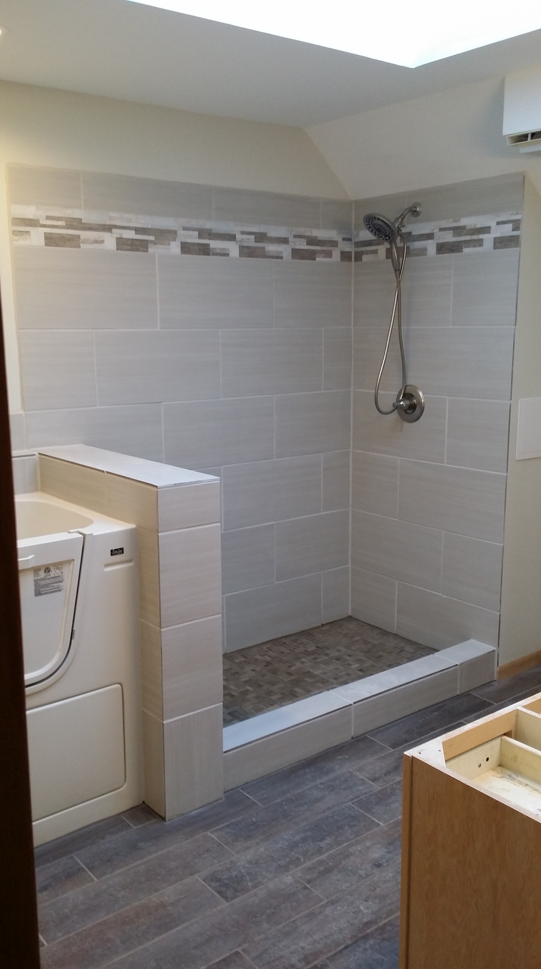 Custom tile work to meet your everyday needs and style preferences. Age-in-place features such as grab bars and lighting are optional. Niches and shelves available.